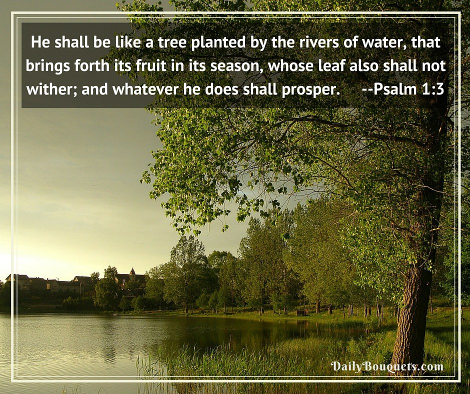 Psalms 1:1-3 in the NIV reads, “Blessed is the one who does not walk in step with the wicked or stand in the way that sinners take or sit in the company of mockers, but whose delight is in the law of the Lord, and who meditates on his law day and night. That person is like a tree planted by streams of water, which yields its fruit in season and whose leaf does not wither – whatever they do prospers.”